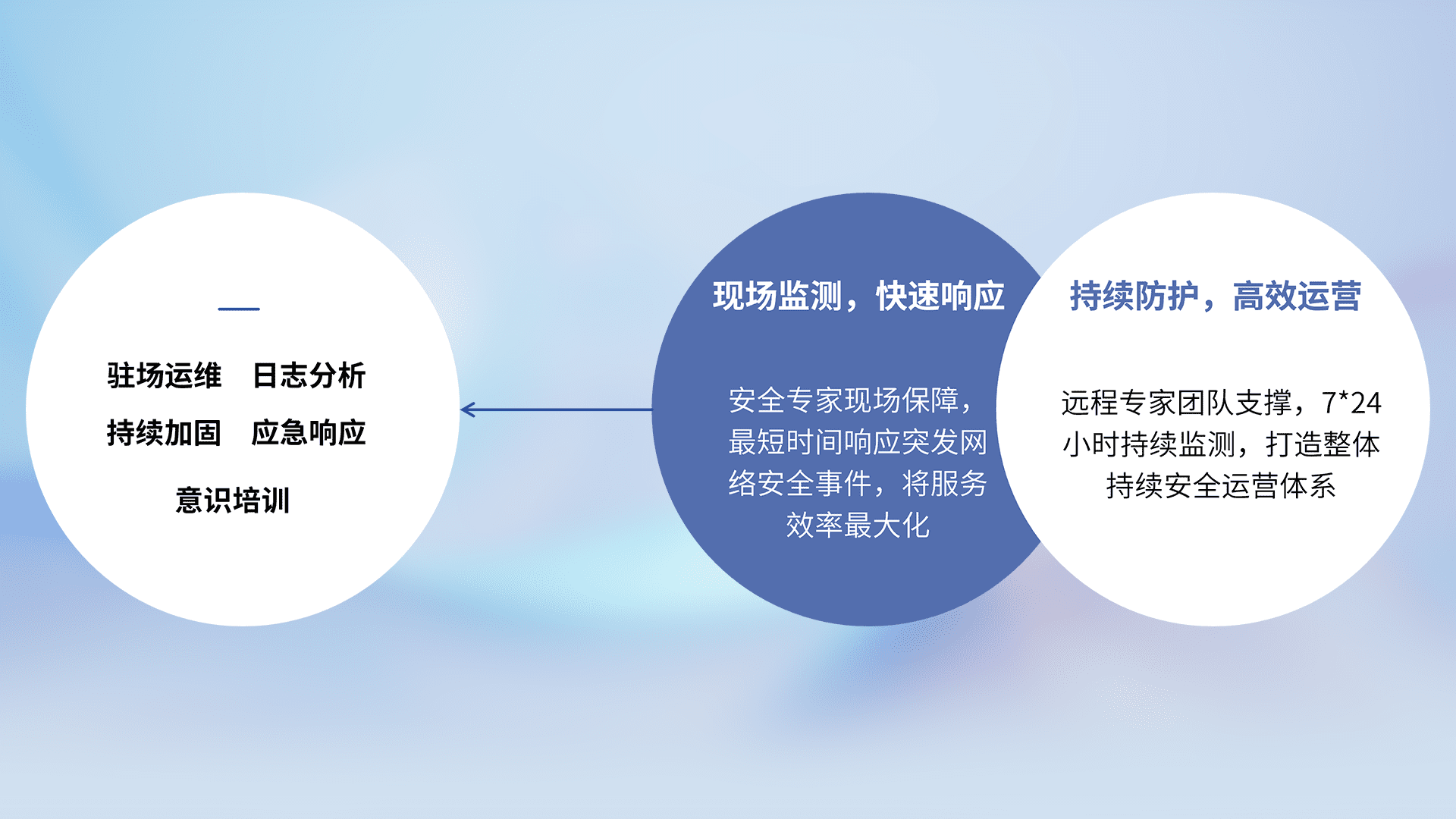 7X24小时持续监测安全事件,保持安全策略有效性,降低资产脆弱性风险,,精准拦截黑客攻击,,,减少被黑客利用的机会,,,第一时间遏制,,,降低损失。。