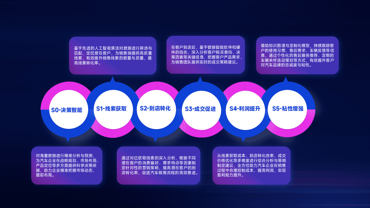 通过拓宽潜在客户来源、、优化线索分配并提高到店转化率,,以增强销售效率。。同时,,利用线索数据不断优化分析模型,,,有效提升转化率,,,扩大营销影响力。。。